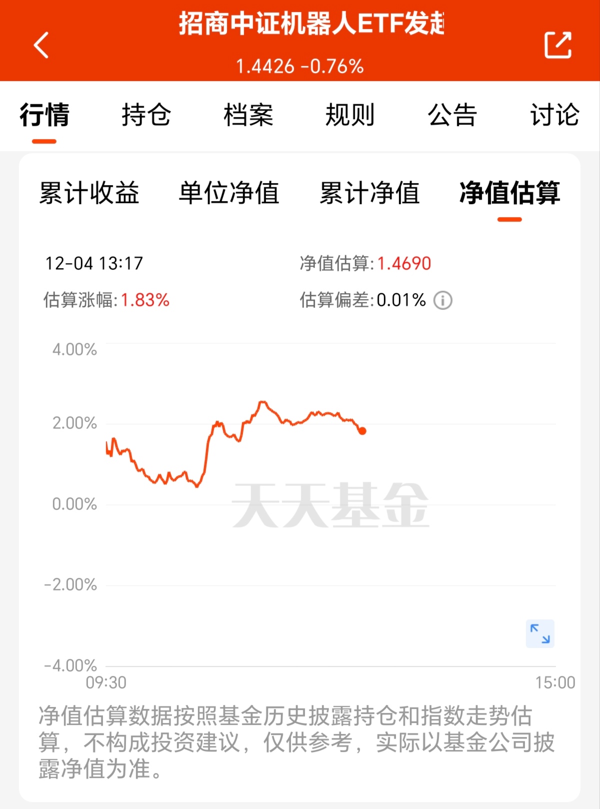 今日A股行情呈现小幅上涨,市场情绪面也有所好转,同时机器人再迎重磅利好消息,特朗普政府准备加速推动机器人技术,发布机器人法令,同时让制造业回流,从而推动机器人有望长期发展,特别是$招商中证机器人ETF发起联接C(OTCFUND|020482)$聚焦机器人全产业链,目前实时涨幅1.8%,行业成长空间广阔,我准备定投起来了!