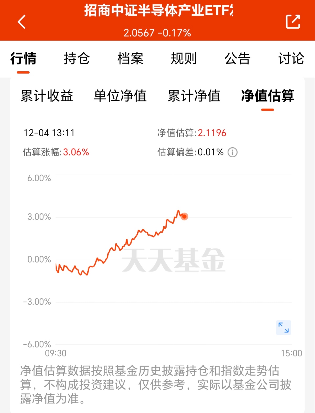 今日大盘行情迎来反弹企稳,A股三大指数集体上涨,个股虽然有所分化,但半导体产业涨幅出色,其中我看好的$招商中证半导体产业ETF发起式联接C(OTCFUND|020465)$目前实时估值大涨3%,聚焦半导体龙头产业,并且当下国家人工智能投资基金成立于2025年1月,总规模高达600.6亿元,而半导体作为AI的“算力心脏”与“储存大脑”,在后期必然会有着不错的发挥,我也将持续看好这一赛道!