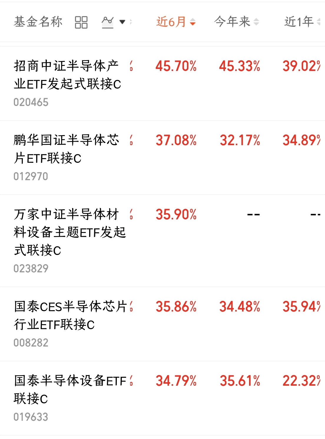 $招商中证半导体产业ETF发起式联接C(OTCFUND|020465)$近半年涨幅45.7%