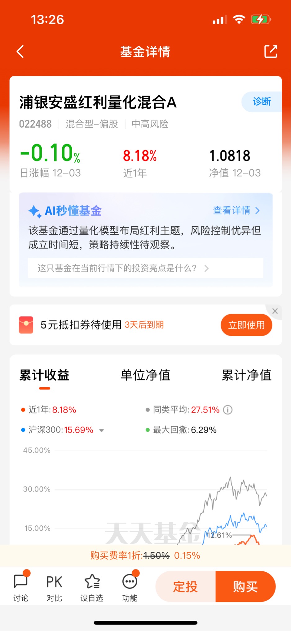 浦银安盛基金持有者来报道了!说实话,我是非常喜欢红利和量化的,而红利量化组合在一