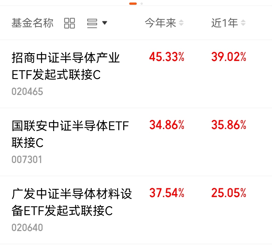 $招商中证半导体产业ETF发起式联接C(OTCFUND|020465)$近一年涨幅39.02%