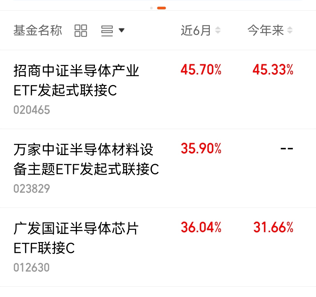 今天三大指数呈现探底回升,整体走势较为稳定,同时半导体赛道带来领涨,不愧为市场主线,刚好来盘点一下热门半导体基金,近半年的涨幅情况: