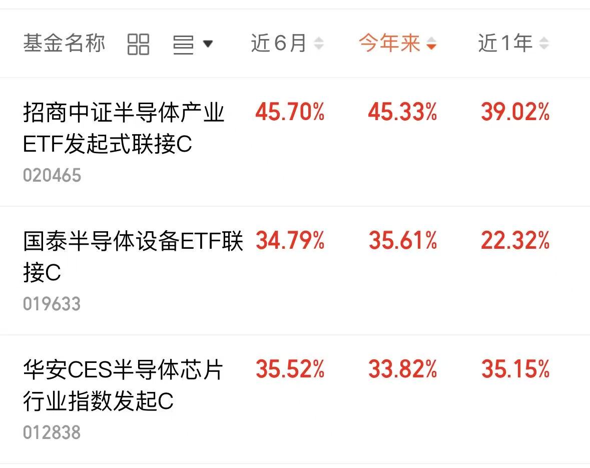 $招商中证半导体产业ETF发起式联接C(OTCFUND|020465)$今年以来45.33%,不错!