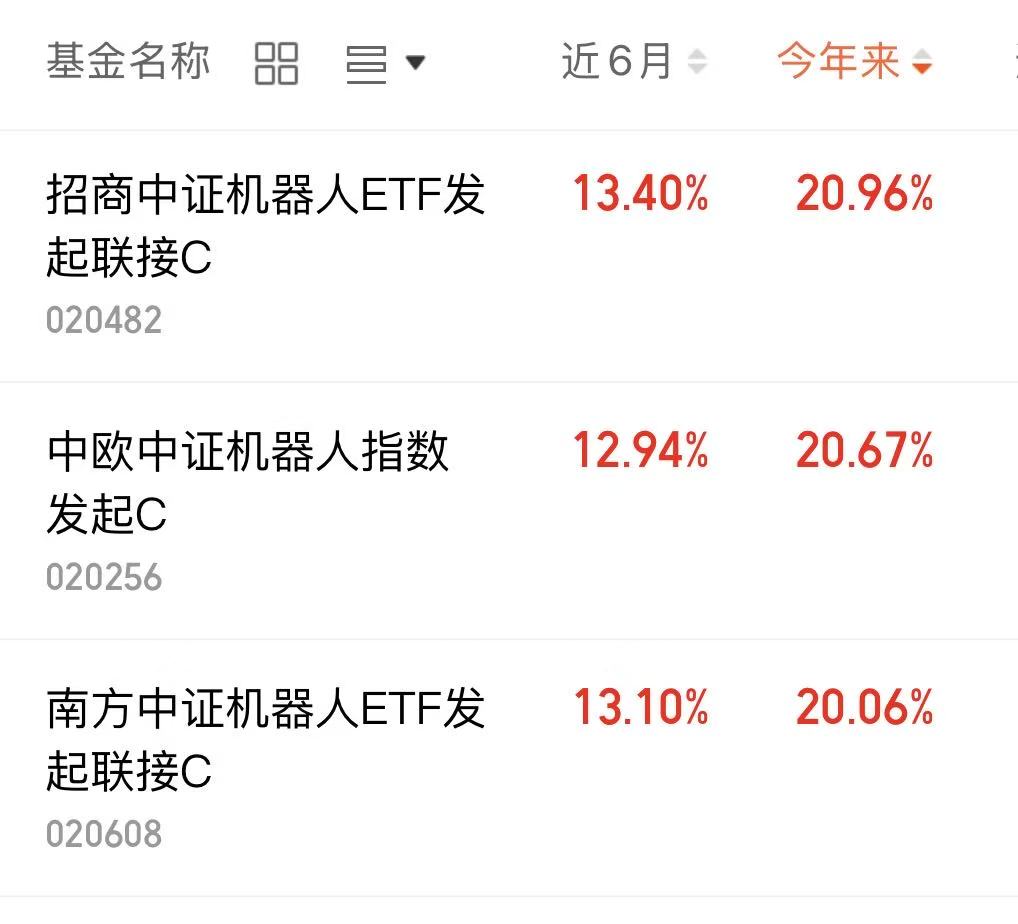 $南方中证机器人ETF发起联接C(OTCFUND|020608)$今年以来20.06%,加自选了!