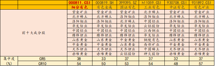 2.龙头集中度领先:中证细分有色金属产业主题指数聚焦铜、金、铝、锂、稀土等兼具战略价值与供需缺口的核心品种,龙头集中度高,前五大成分股集中度高达38%,同类领先。