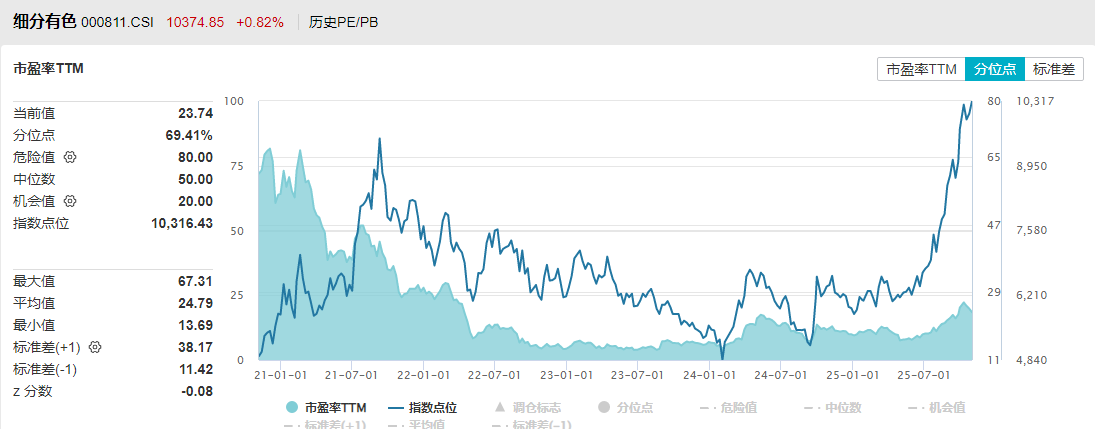 12月4日,A股市场普调,有色板块逆势冲高!中证细分有色金属产业主题指数(000811)盘中一度上涨超1%,后续小幅回落。(数据来源:choice,指数过往表现不预示未来,亦不代表相关基金表现)
