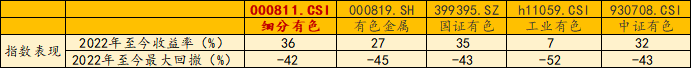 3、收益率表现更优:2022年至今,中证细分有色金属产业主题指数累计收益率同类领先,且最大回撤同类更低,投资体验更好。