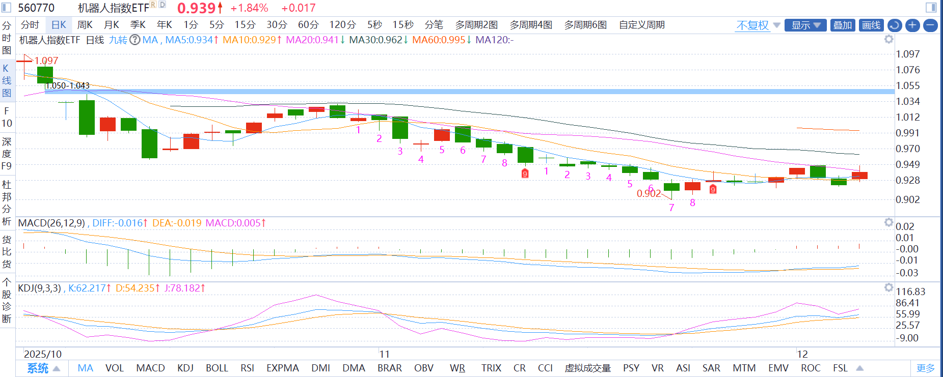 机器人板块:今日绝对主线,强势冲高,A股机器人ETF基金大涨超2%。美国政府拟加速推进机器人产业,特斯拉擎天柱人形机器人进展顺利,技术面周线上涨趋势在,躺平不乱割,麦爸继续持仓看涨。