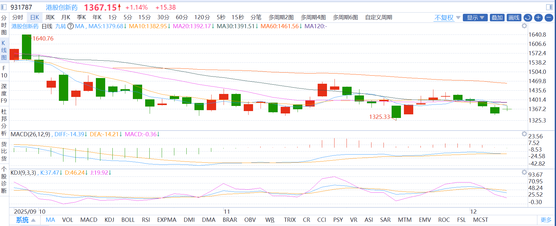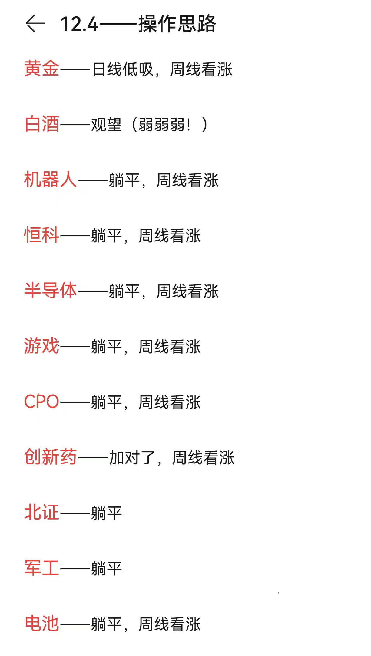 港股创新药:昨日已低吸,今日就不动了,还是那个观点港股创新药目前处于近 5 年历史分位,比 90% 历史时间便宜,妥妥的估值洼地,加上中国药品价格登记系统已经上线,利于创新药“走出去”,吸引国外新药进入,行业环境持续优化;技术面周线看涨趋势明确,麦爸持仓看涨。