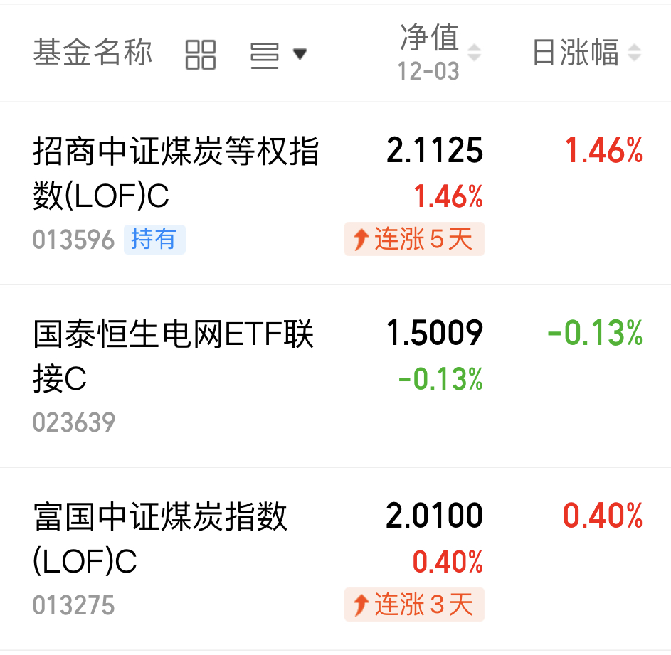 $招商中证煤炭等权指数(LOF)C(OTCFUND|013596)$昨天上涨1.46%