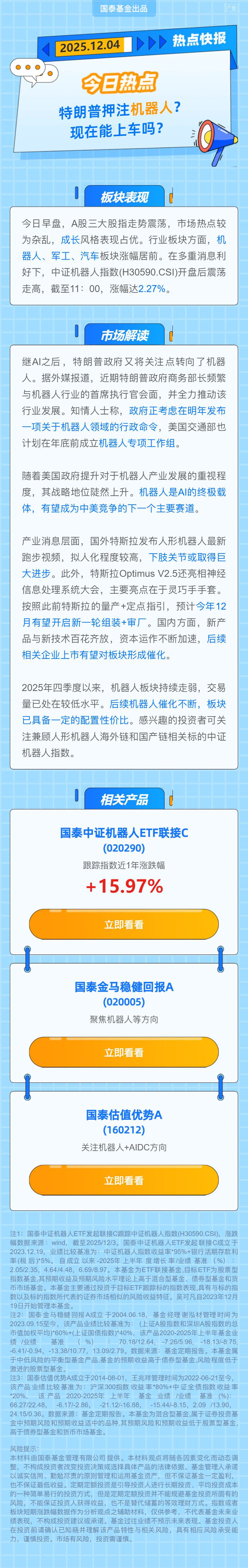 $国泰中证机器人ETF发起联接A(OTCFUND|020289)$$国泰中证机器人ETF发起联接C(OTCFUND|020290)$$国泰金马稳健混合C(OTCFUND|015589)$$国泰金马稳健混合A(OTCFUND|020005)$$国泰估值优势混合(LOF)C(OTCFUND|016616)$$国泰估值优势混合(LOF)A(OTCFUND|160212)$