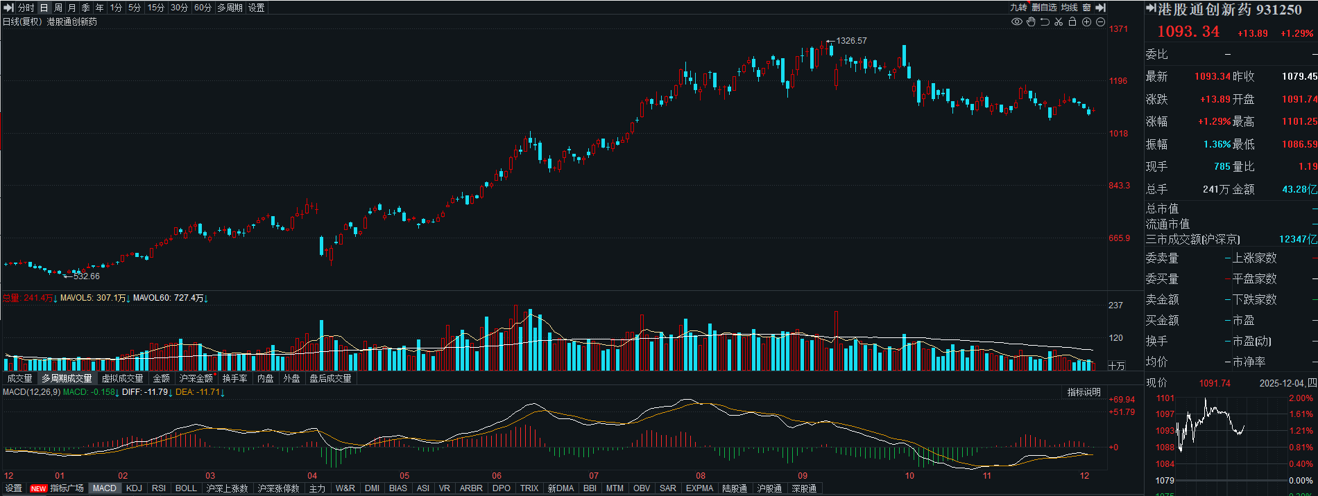 港股通创新药止跌反弹,指数涨超1%,短期关注120日均线,只要站稳120日均线,创新药的趋势才会确立,当下可以再等等。