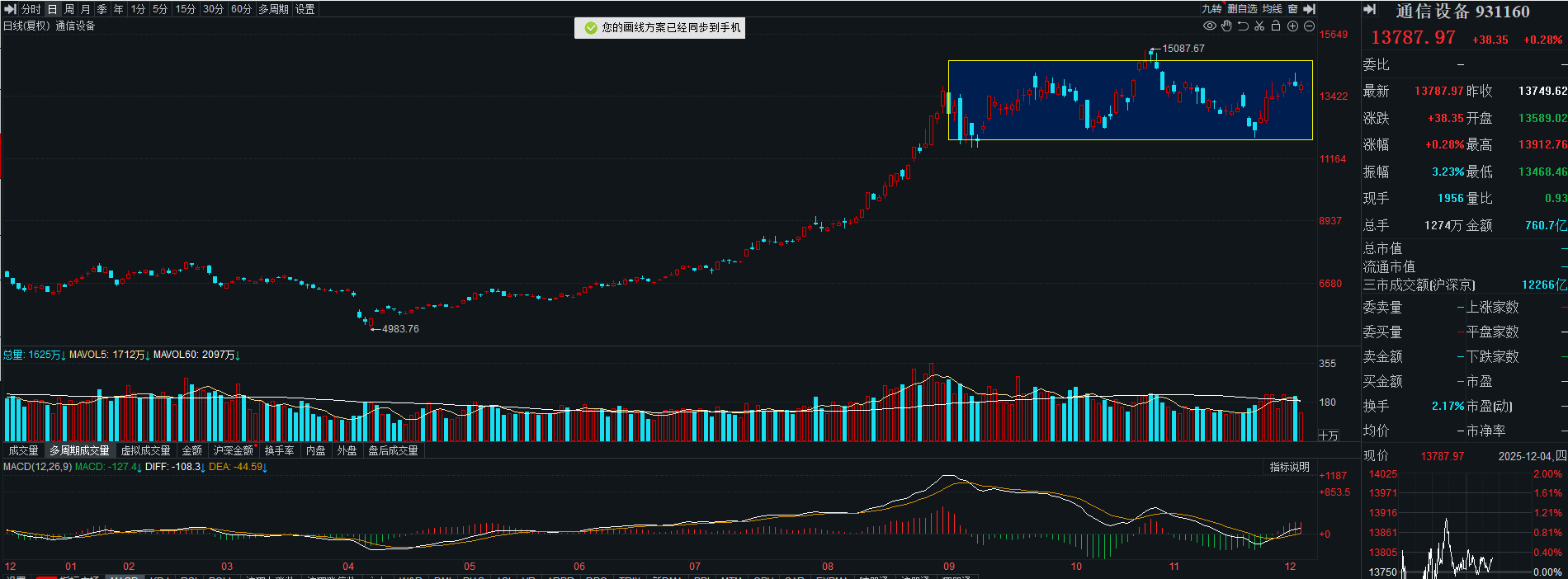 通信设备窄幅震荡,日K线回踩5日均线支撑,附图MACD金叉向上,短期可以再等一等,当下美联储降息预期升温,近期A股是有机会的。