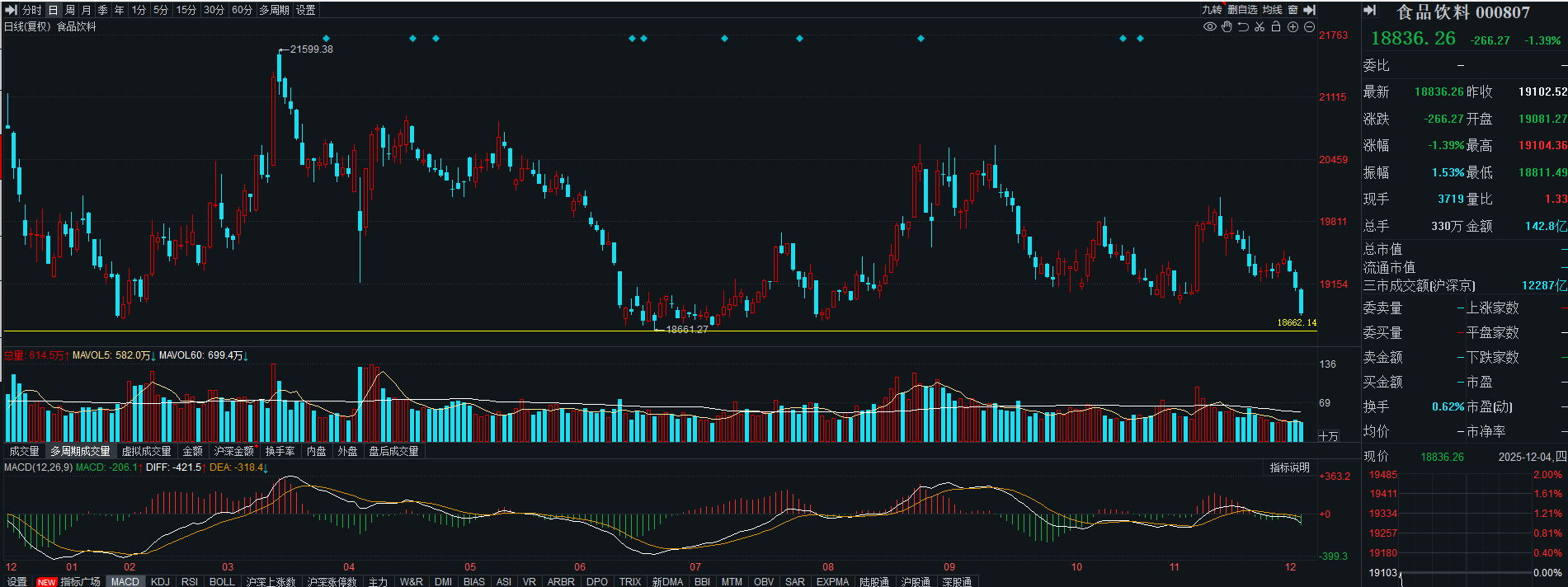 食品饮料继续走低,行情已经破位,短期观望,等回暖以后再去安排。