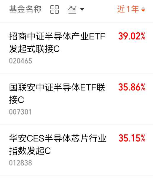 $招商中证半导体产业ETF发起式联接C(OTCFUND|020465)$近一年+39.02%
