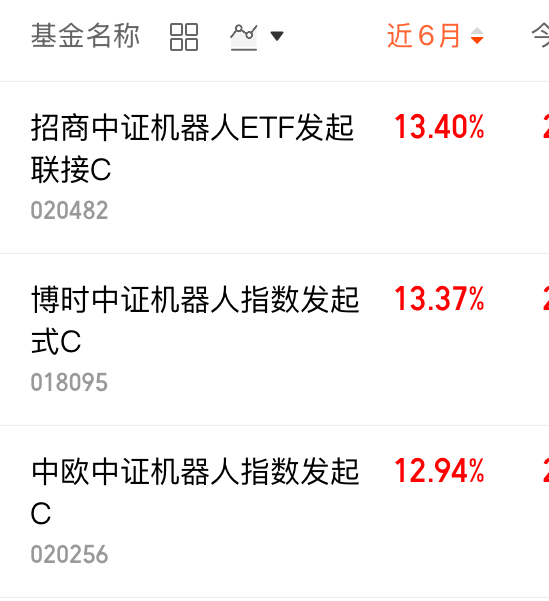 $招商中证机器人ETF发起联接C(OTCFUND|020482)$近半年+13.40%