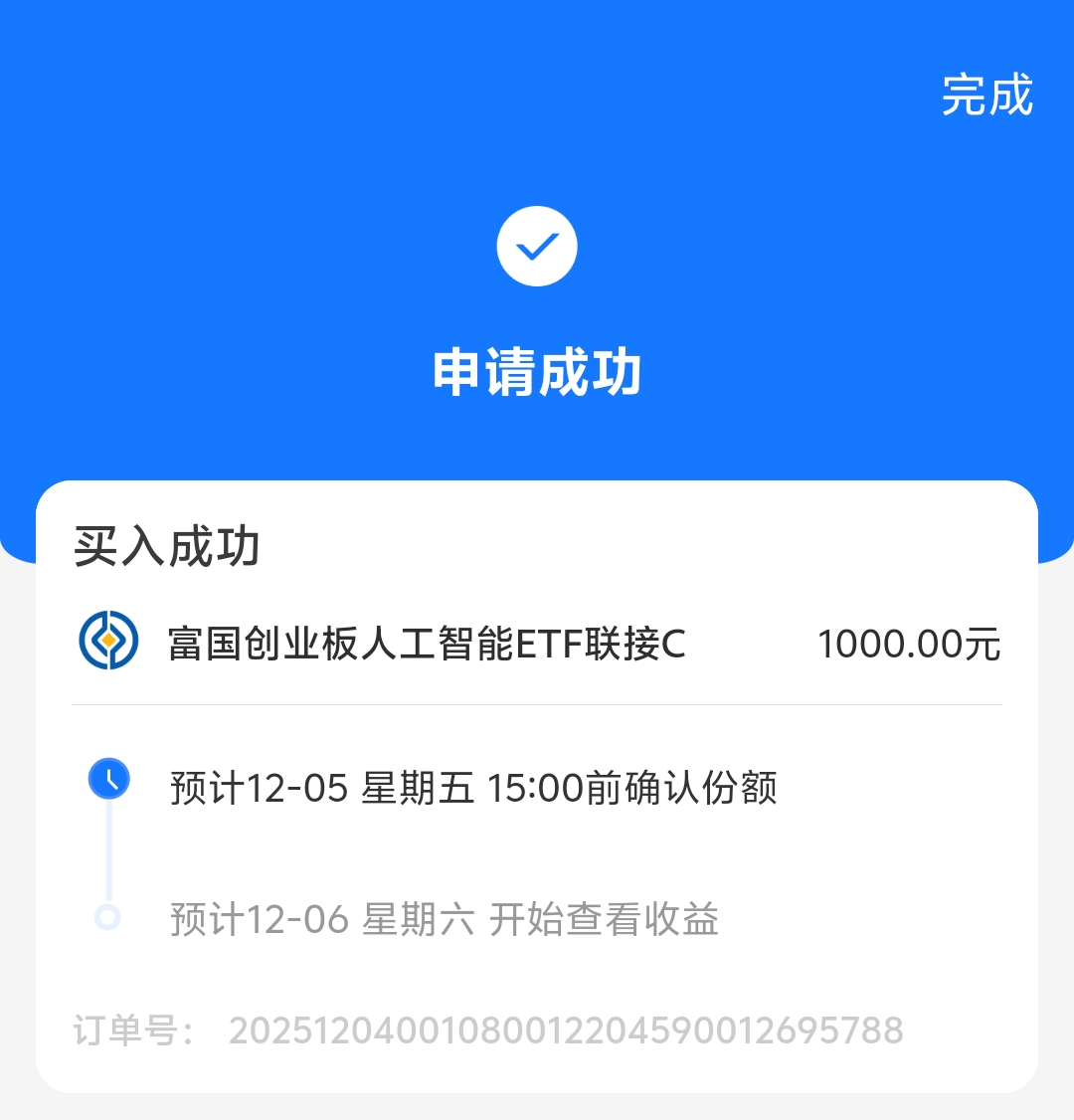 最近发现AI把健康管理做得越来越贴心了,比如可穿戴设备收集日常数据后,能给出个性化的健康洞察和建议,让预防性健康关怀不再遥远。今天继续为$富国创业板人工智能ETF发起式联接C$ 投入1000元,健康是每个人最在意的事,而AI正让持续监测、科学管理变得触手可及。这种贴近生活的技术创新看着不张扬,却悄悄孕育着长远的进步,挺让人期待的。