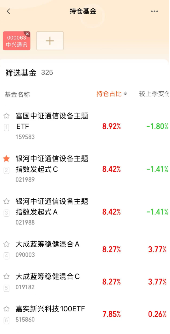 买入1000元$富国中证通信设备主题ETF发起式联接C(OTCFUND|021934)$,今天的行情有点意思了,科技板块振幅加大,一早上的以为要凉,没想到触底后直线拉升,目前来看这个产品估值从-125%拉到了1.3%。极速拉升大部分后续还会有行情,熙凤今天选择加个仓。现在配置etf联接基金风险会更低一些,这个产品被动跟踪通信设备的,近一年涨幅达到了81.93%,排名全市场第19,等于除个别主动产品外,富国跟踪方面也是优秀的。而且富国的通信设备持仓中际旭创和中兴通讯是最多的。
