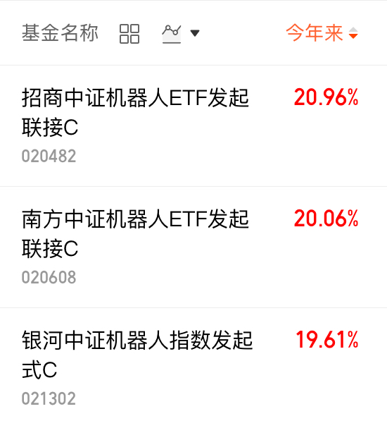 $招商中证机器人ETF发起联接C(OTCFUND|020482)$今年以来+20.96%