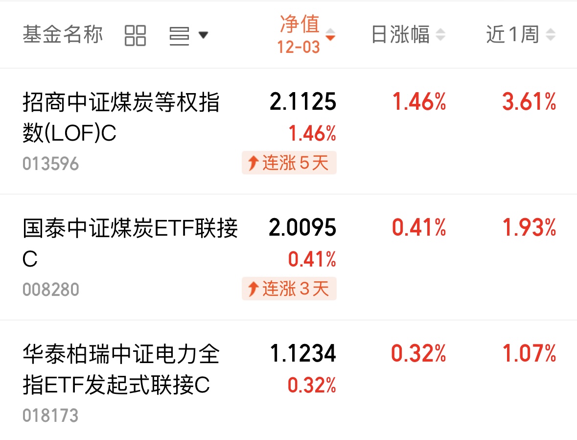 煤炭板块报净值了!