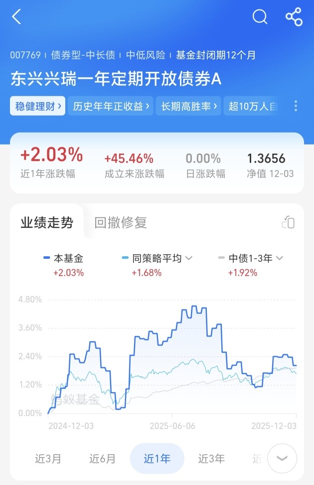 东兴兴瑞一年定期开放债券A(007769)是东兴基金管理的中低风险债券型基金,2