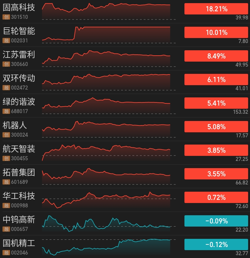 然后我们就发现很多僵尸机器人股都躁动起来了。