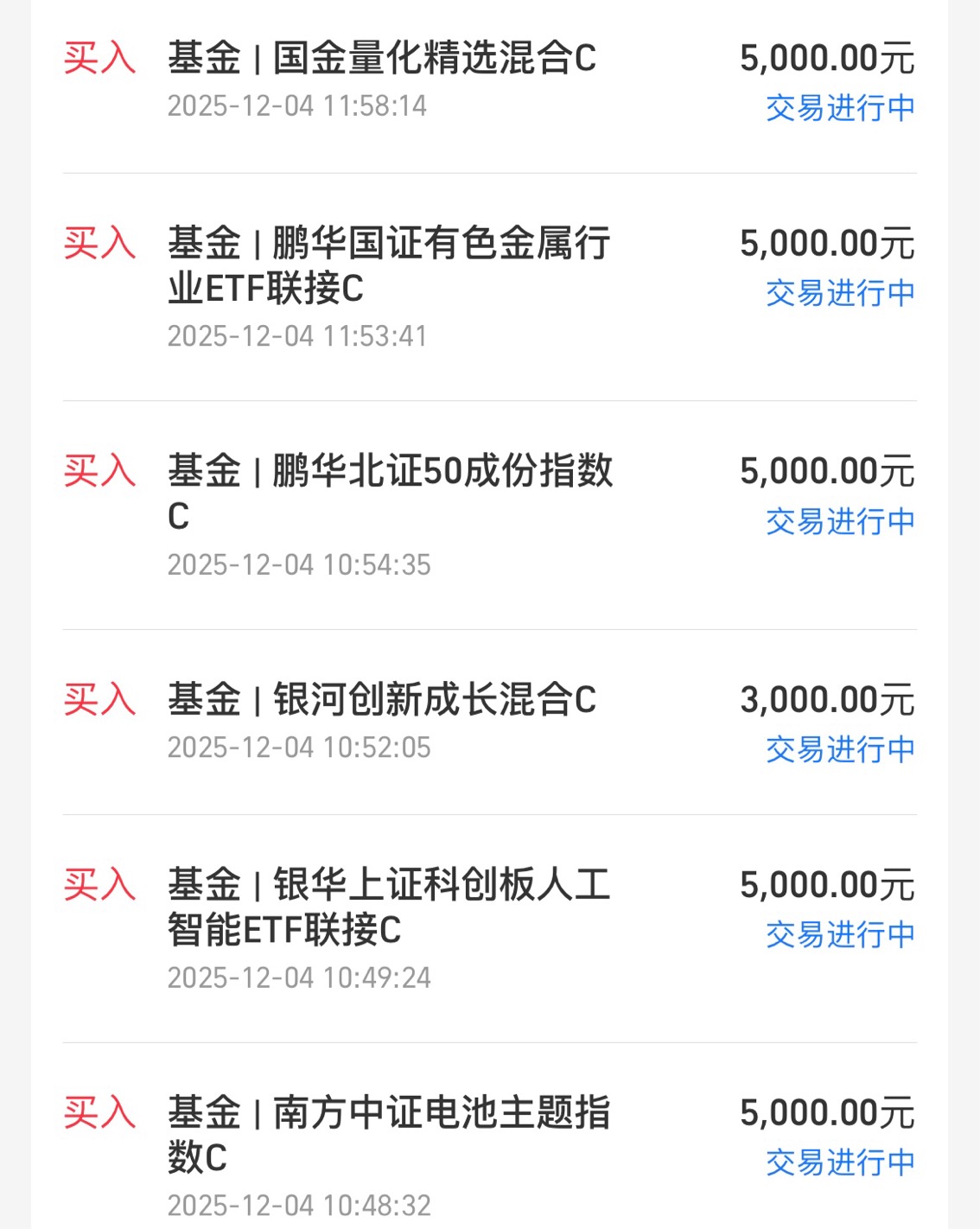 5. 量化精选,上车5000,$鹏华国证有色金属行业ETF发起式联接C$ 连续两天跌接近2%,今天止跌企稳,我个人撑着筹码便宜的机会加仓5000,第二次上车