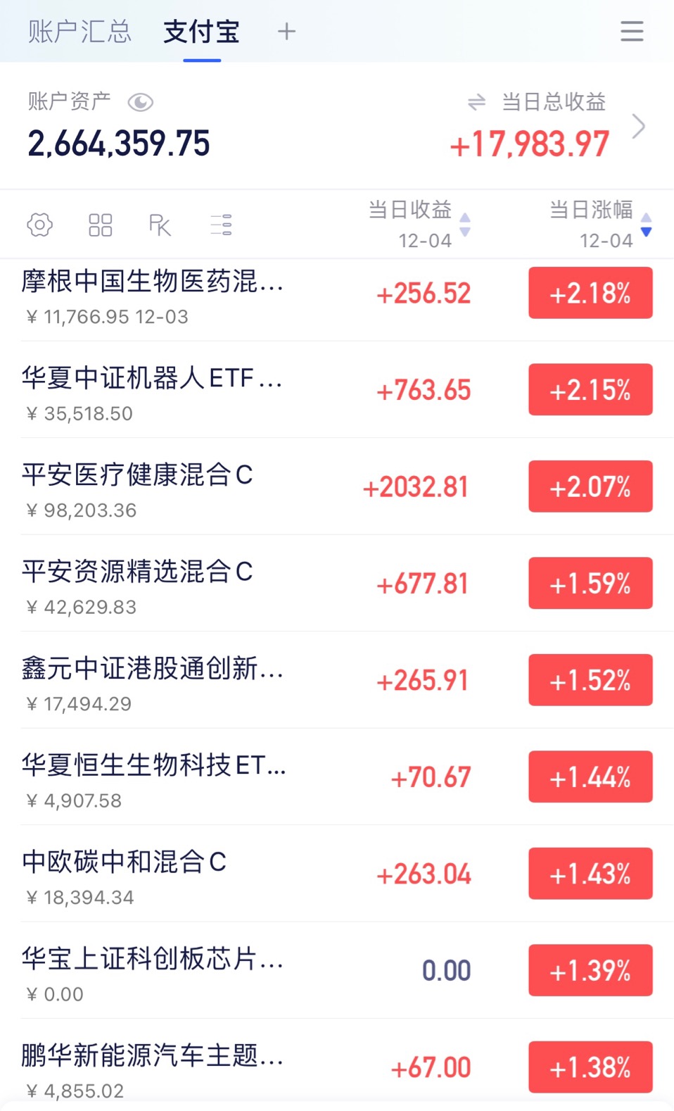 操作上,连续两天反弹,但有色金属这一波筹码并不贵,从去年9月24日以来最高上涨也就是58%,刚好跑赢市场平均,个人趁着筹码便宜机会上车5000(数据来自蚂蚁财富截止12月3日)