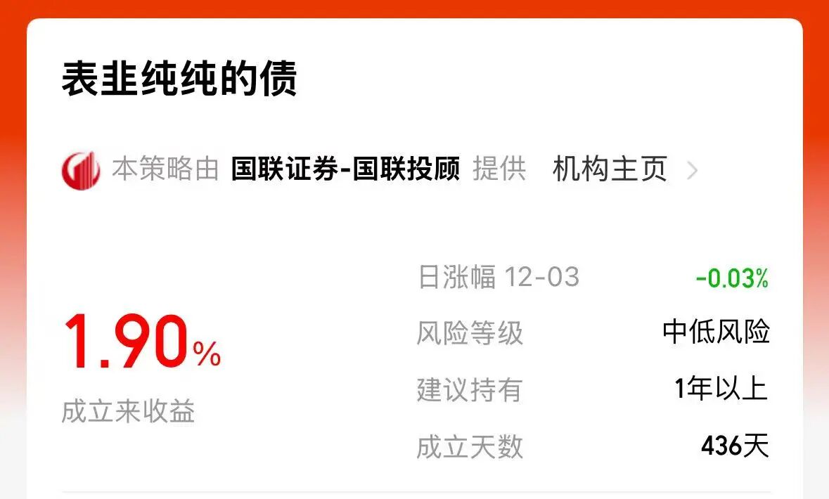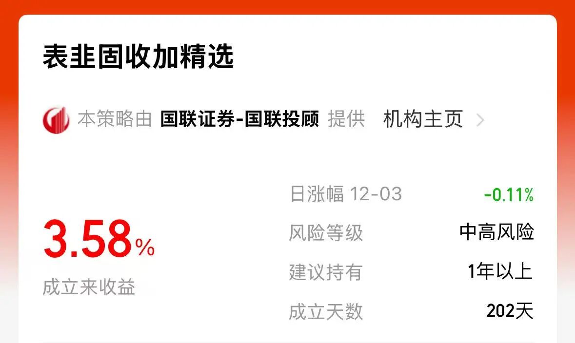 #晒抱蛋收益##债基朋友圈##铜价刷新历史高点!##机构:看好“春季行情”提前开启##12月基金投资策略##12月你看好哪条投资主线?##低估补涨号启航##2025即将收官,明年怎么投?##观点搭子团火热招募中!##今年你的投资目标达成了吗?##11月我的投资总结!##白银价格续创新高!空间还有多大?##字节、中兴合手机!换机潮要来了?##今年买基金赚了多少钱?##3800点的A股值得加仓吗?##基金经理开实盘啦##促消费新方案印发:增强供需适配性##4000点 到底要不要止盈?##全球股市集体下跌 你怎么看?##华为将发布AI领域的突破性技术##小摩:超配中国! 调整是买入时机##黄金又牛起来了!这次你上车了吗?##2025即将收官 明年怎么投?##流感药订单飙涨14倍 医药板块走强!#