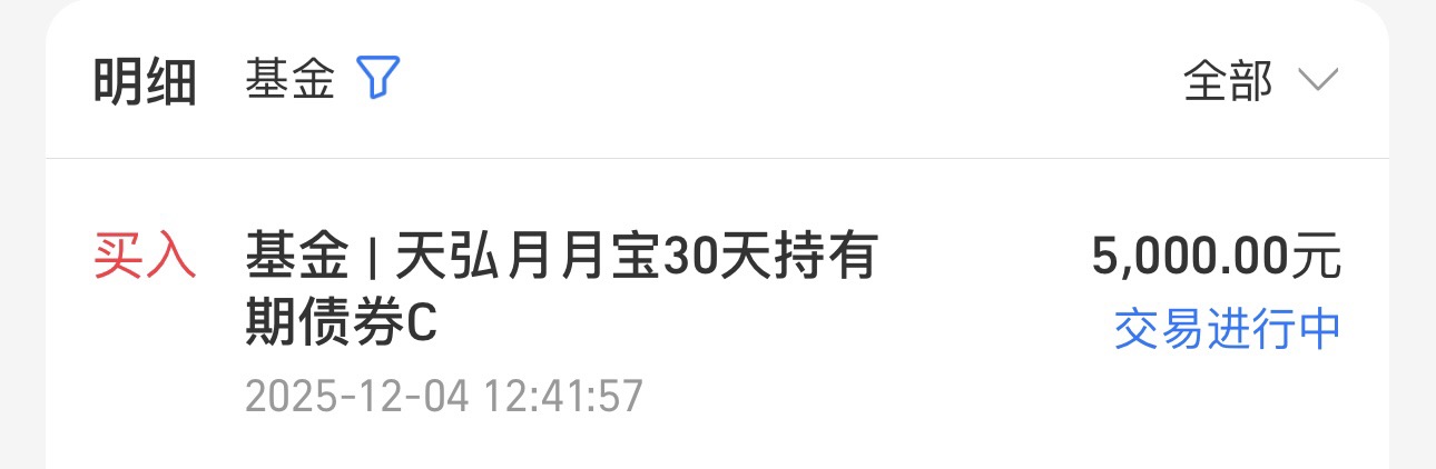 $天弘月月宝30天持有期债券C$ :小王今日上车5000元,目前大盘回调幅度比较大,所以我觉得我还是要继续适应行情来上车稳健的纯债基金;从最新的第三季度持仓来看:信用债占比113.61%,利率债占比6.12%,并且我从历史收益曲线上来看都是笔直增长,回撤控制的十分到位,所以我已经把它当作我的底仓基金了,并且该基金聚焦金融债和短融,都是较为稳健的持仓,我觉得也是比较适合目前的行情;并且拉开长期收益来看:成立未满一年的收益率就已经达到2.22%,最大回撤只有0.10%,收益回撤比做得很到位,所以综合考虑我要上车稳建的纯债基金5000,我还是喜欢稳稳理财啦