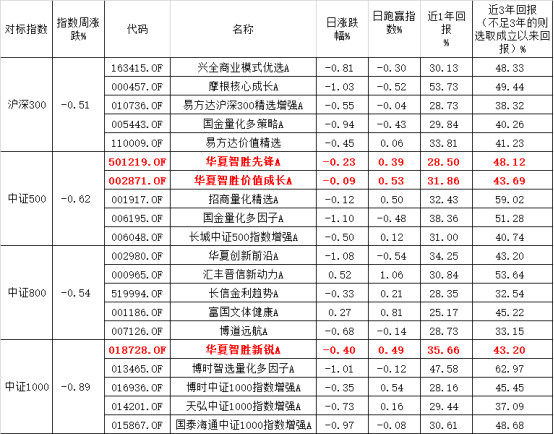 还是那句话,震荡市场,先求不败而后胜,选择超额专区里长期大概率跑赢对标指数,持有人正收益高的产品,有助于我们在当下市场里“减震”。昨日虽然颠簸,但不少产品还是跑赢了对标指数。比如昨日中证500、中证1000下行较多,但$华夏智胜先锋股票(LOF)A(OTCFUND|501219)$、$华夏智胜价值成长A(OTCFUND|002871) $ ,分别跑赢对标指数0.39%和0.53%,后者也是同类产品中跑赢指数最多的,此外华夏智胜新锐A和博时中证1000指数增强A也跑赢对标指数0.5%左右,超额实力依然不俗。