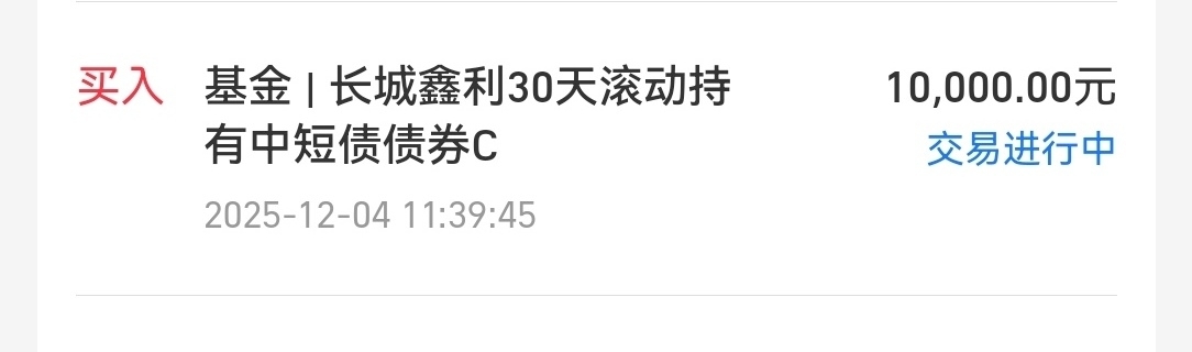 上车$长城鑫利30天滚动持有中短债C$ 10000
