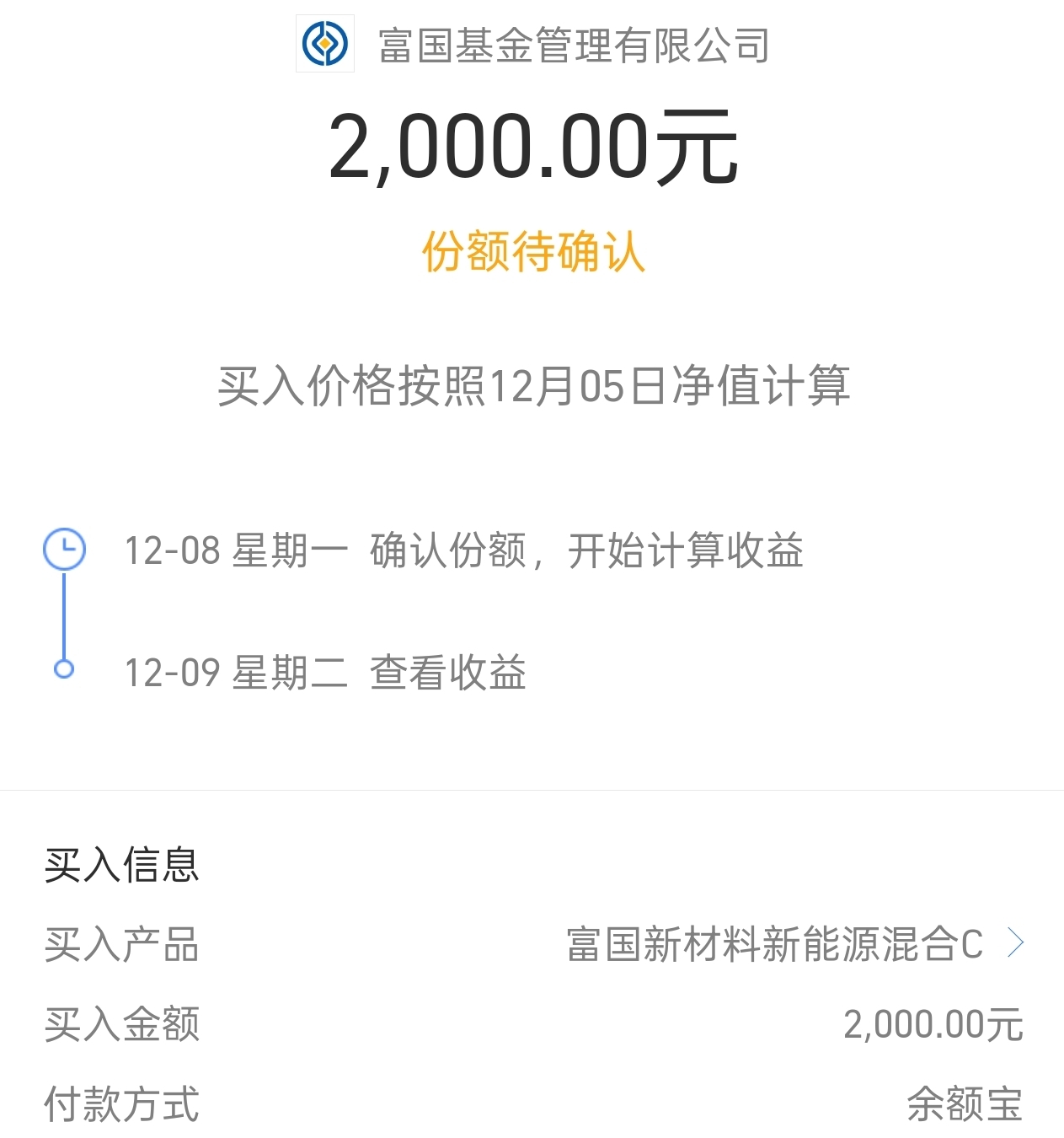 今天市场还是可以的,整体在波动,不过我长线看好。今天上车了$富国新材料新能源混合
