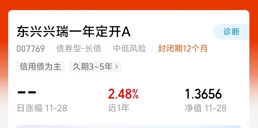 当前大盘依托流动性改善与政策托底稳步上行,但短期波动加剧催生避险需求。债市在央行国债买卖操作护航下收益率修复,信用债表现强于利率债。东兴兴瑞一年定开债A(007769)近一年收益2.48%,长期业绩亮眼,通过精准把握债券市场结构性机会,在震荡市中展现出强抗波动能力,适配稳健理财需求。