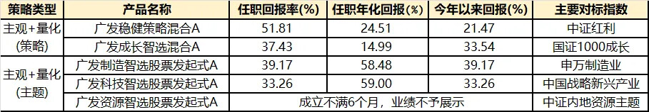 在主题增强型基金方面,杨冬团队今年陆续布局了“智选”系列产品,包括广发制造智选(023524)、广发科技智选(023647)和广发资源智选(023834),分别聚焦近年来热度较高的高端制造、科技和资源三条赛道,为看好相应领域长期前景的投资者提供了锐度更高的选择。$广发制造智选股票发起式C(OTCFUND|023525)$$广发科技智选股票发起式C(OTCFUND|023648)$$广发资源智选股票发起式C(OTCFUND|023835)$