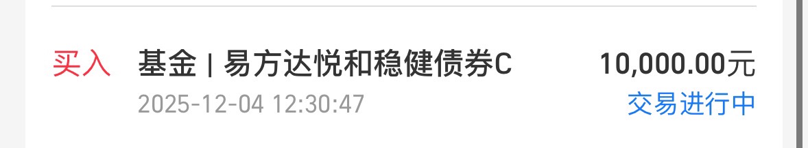 今天权益持仓中的贵金属,工业金属个股涨幅不错,今晚也依旧能收蛋,近半年收益率4.02%,近一年收益率6.05%,整体收多跌少,比买纯债与银行存款强很多,各阶段业绩也是优秀,固收+多重优势互补,也是今年的债基主线,业绩超额增长,后期还是很有信心的,今天先打个底仓大额上车10000元,后期慢慢补仓。