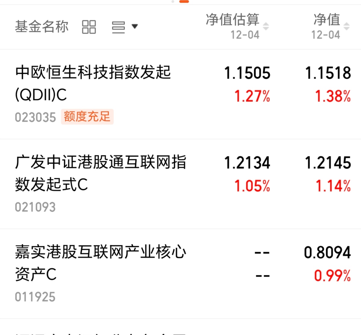 $中欧恒生科技指数发起(QDII)C(OTCFUND|023035)$涨幅1.38%