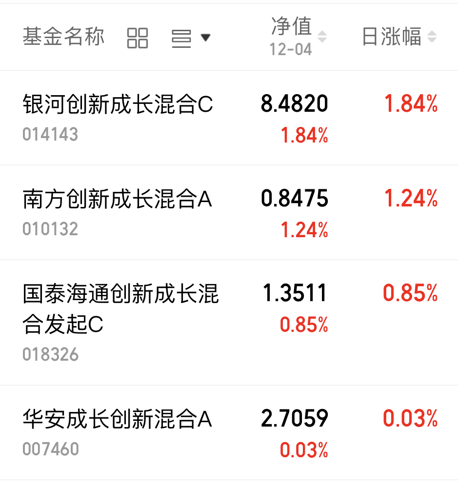 $南方创新成长混合A(OTCFUND|010132)$今晚上涨1.24%