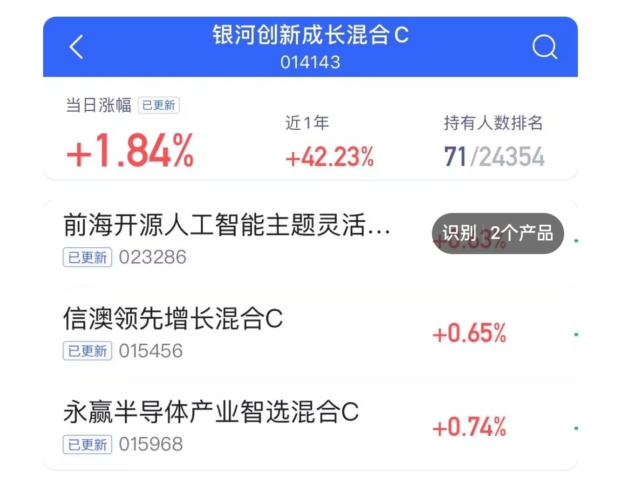 $银河创新成长混合C$ 今日收涨1.84%,近期业绩表现确实不错,波动小,回撤低,希望继续保持!