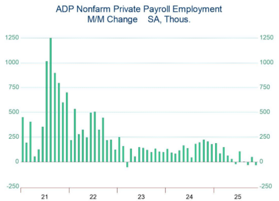 细分来看,这次数据出现典型的周期性分化,制造、建筑、金融、信息、专业服务都在同步收缩,而逆周期行业教育医疗仍在稳步扩张。这种趋势和反差符合经济从过热阶段转向放缓、软着陆阶段的特征,对放宽金融环境比较有利。