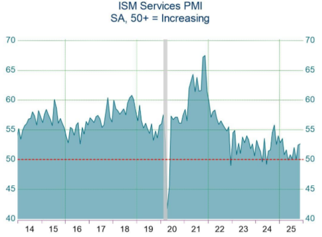 另外昨晚还公布了ISM非制造业PMI指数为52.6,高于预测,虽然和10月52.4相比变化不大,但创九个月最高。支付价格部分有所下降,但仍保持高位。
