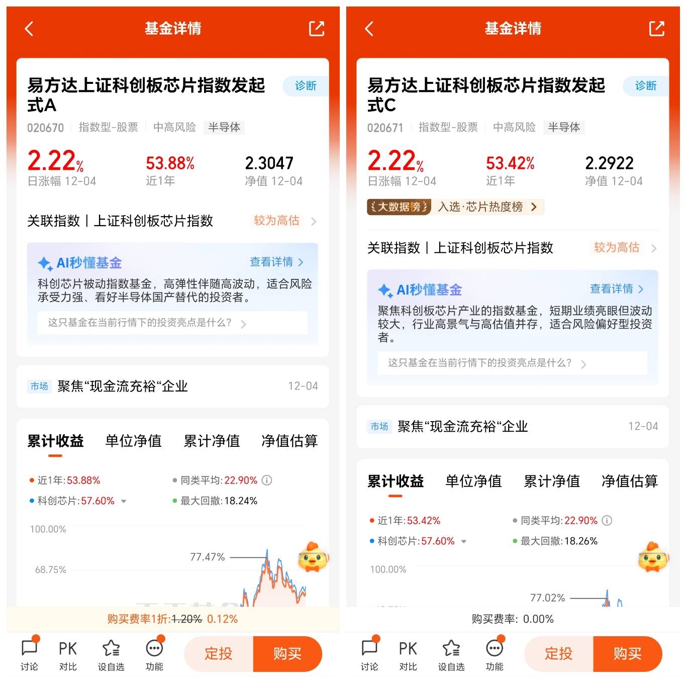 截止2025年9月30日,上证科创板芯片指数前十大重仓股合计占比达59.69%,包括海光信息、澜起科技、中芯国际、寒武纪、中微公司、芯原股份、华虹公司、华海清科、晶晨股份等企业,都是国内顶尖的芯片研发科技企业,是国产替代的主力军,未来发展潜力巨大,重点关注$易方达上证科创板芯片指数发起式C$ ,该基金来自于易方达大厂,业绩优秀,投研能力强,曾获奖无数,为投资者带来了满意的回报。@易方达基金