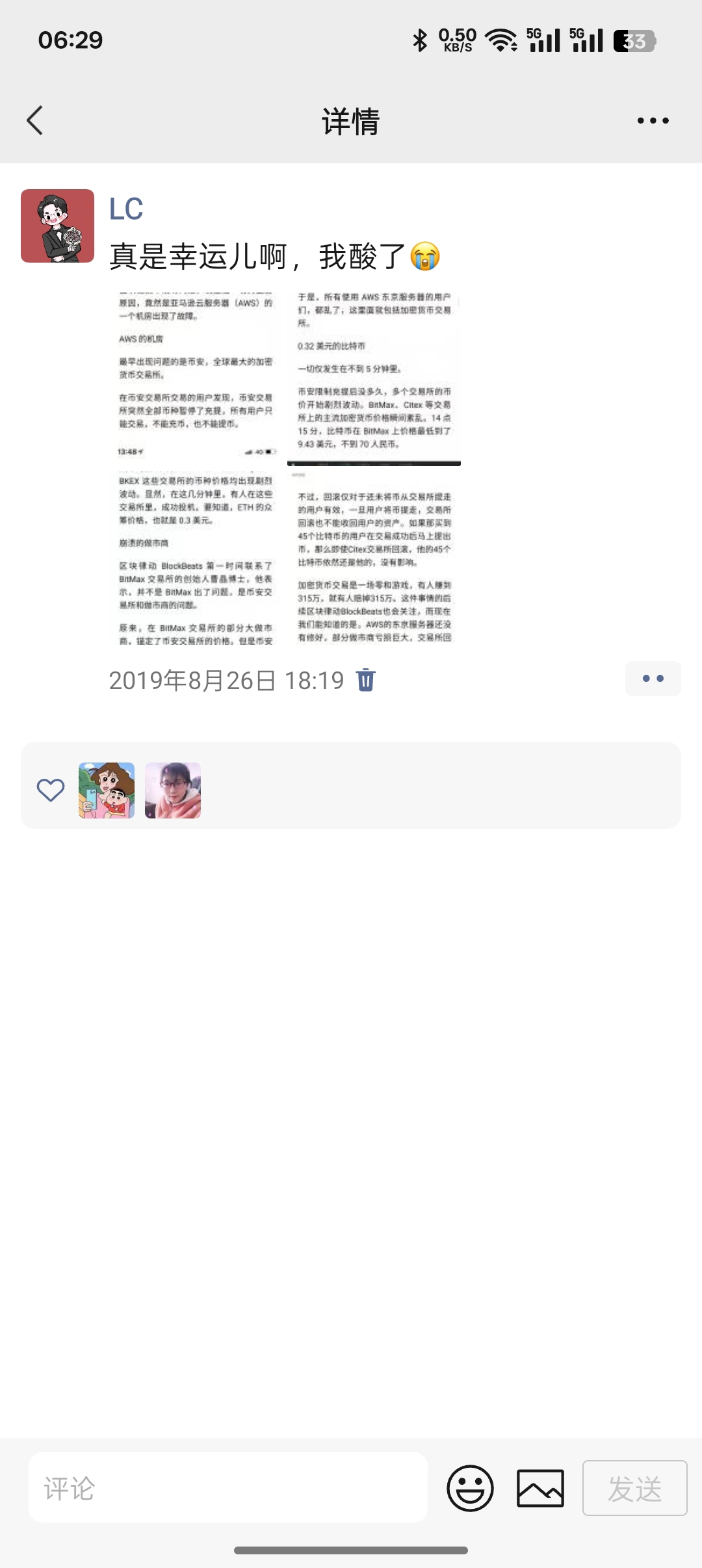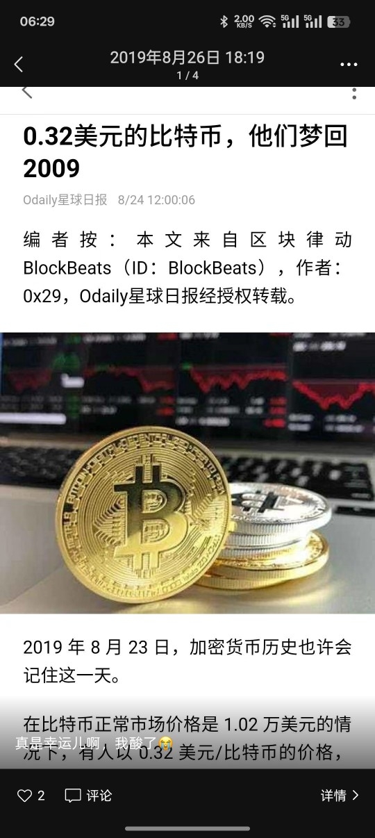2019年8月26日的晚上,我发了一条朋友圈,当时比特币0.32美元一枚。