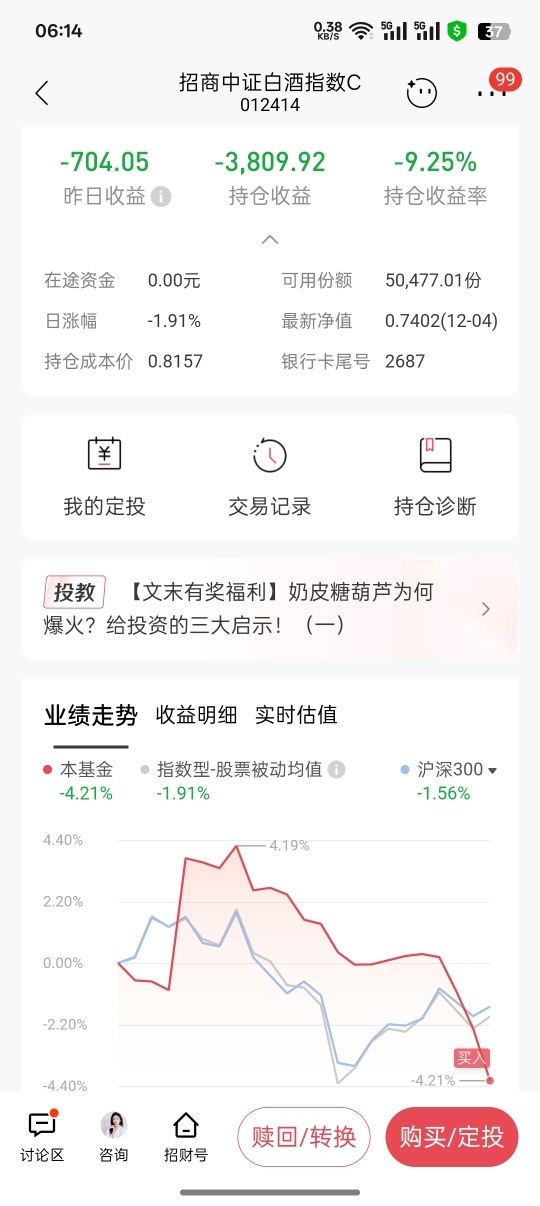 写于2025年12月5日#白酒板块继续下跌 能抄底吗?# #DeepSeek、寒武纪同步发布引关注# #12月你看好哪条投资主线?# $招商中证白酒指数(LOF)C$ $华富中证人工智能产业ETF联接C$
