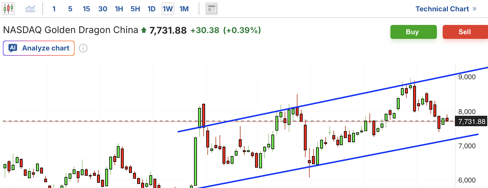 中概股:中概股最近维持在一个宽幅震荡的格局。近期股价受阻于通道压力位而出现回调,目前已靠近重要支撑位。尽管这几日出现了止跌迹象,但尚未形成确定的回升趋势,投资者仍需保持观望。