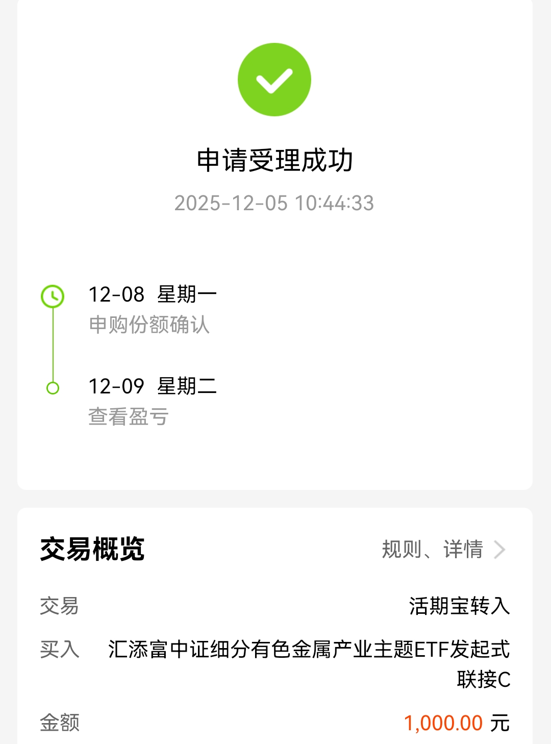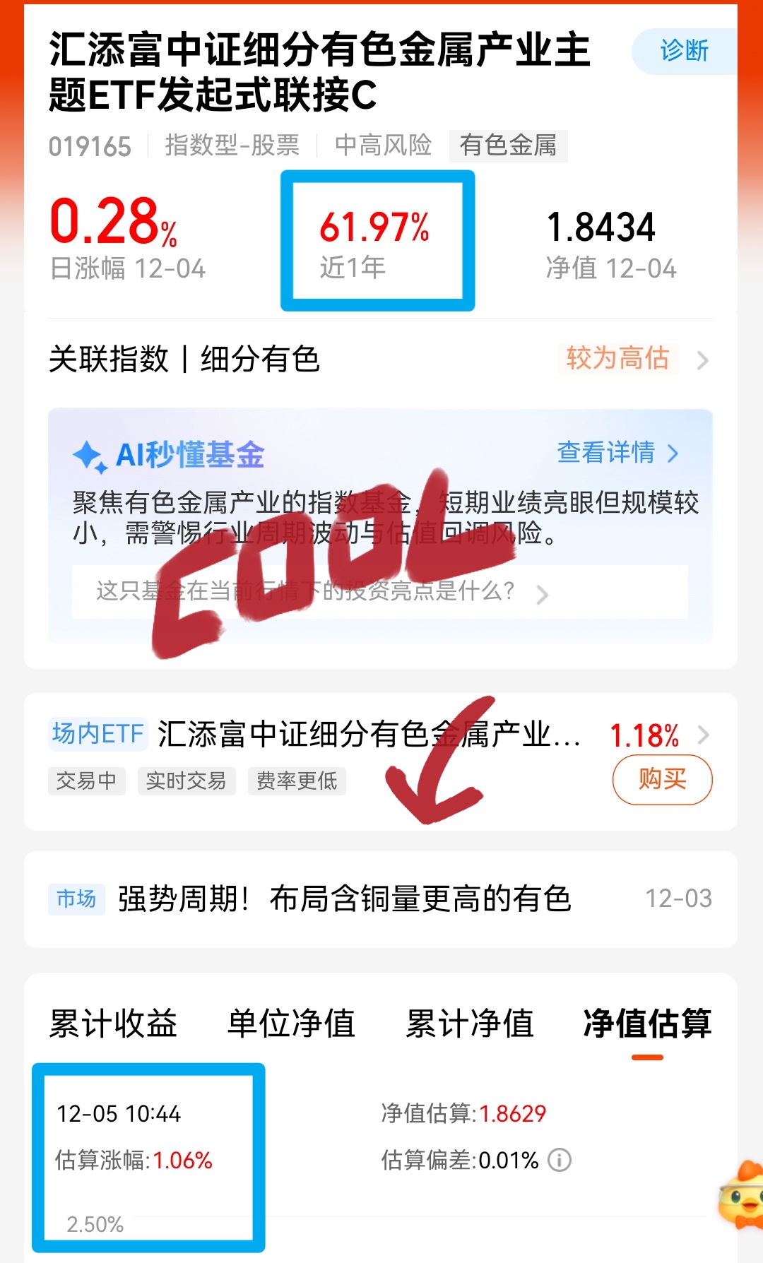 $汇添富中证细分有色金属产业主题ETF发起式联接C(OTCFUND|019165)$含铜量30%,黄金含量14%,显著高于同类有色指数。实时涨幅1.06%,冲击三连涨。受有色板块铜铝供应紧缺、降息预期以及黄金的韧性支撑,右侧行情来了,分批上车,期盼兑现有色金属的金融属性和战略价值。