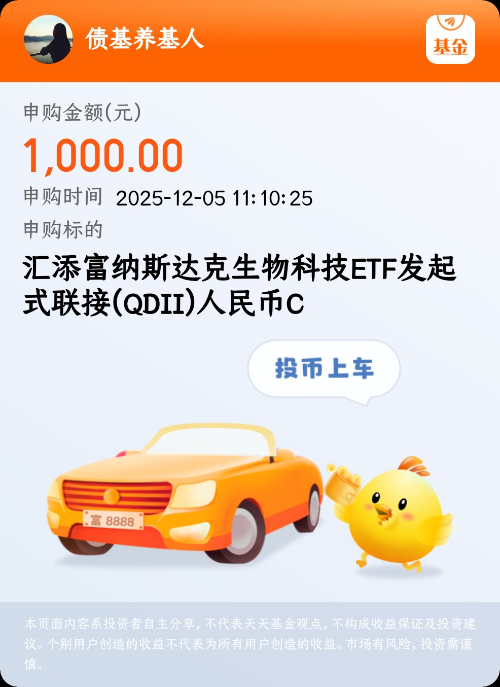 本月美联储议息会议若落实降息,美股科技板块将受益,低估值生物科技有望快速修复。目前该基金每日限购1000元,我打算分批定投加仓,平摊成本,控制仓位。今日我已加仓1000元,开启稳步定投策略,坐等起飞。