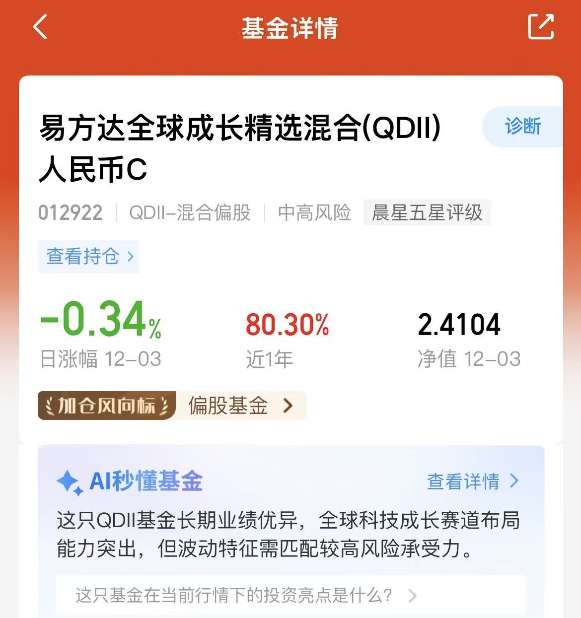 近期美股科技股波动比较大,但AI算力市场规模年增超36%,整体来看科技行情还在延续的,我继续看好科技板块,易方达全球成长精选混合C一季报重仓港股抓估值修复,二季报切换美股AI算力,美股大跌时及时调仓控回撤,覆盖芯片、光模块等核心赛道,基金经理的风控与择时能力为收益护航,我也打算入手起来了。#机构:看好“春季行情”提前开启# #12月你看好哪条投资主线?# $华宝纳斯达克精选股票发起式(QDII)A(OTCFUND|017436)$