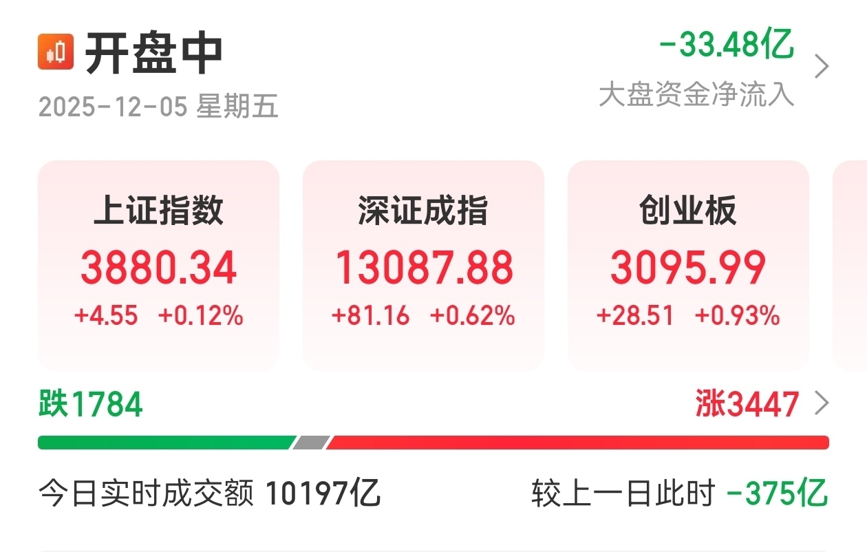 真是没想到,三大指数都集体翻红了,但是创指明显更强一些,存量资金博弈下,行情的可持续性相对差一些,所以不能过于激进了,但是人气是明显有所恢复,我觉得这是一个好现象,希望能够继续稳住。