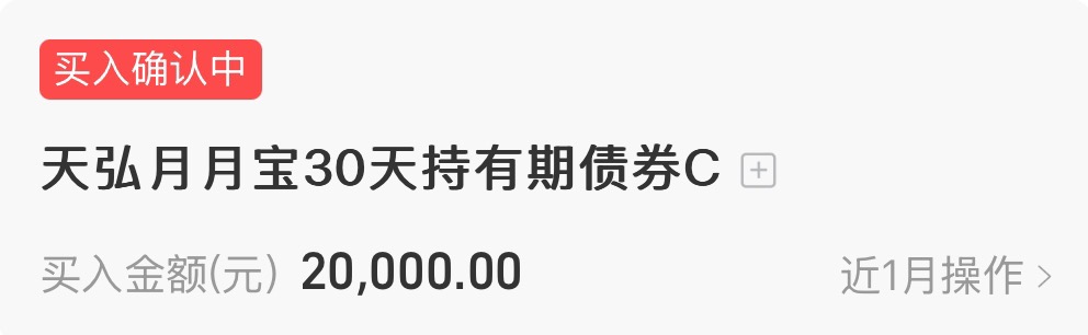 债市这几天颠簸小震荡,小皮还是闲钱放到稳健的短债里面靠拢了,天弘月月宝30天持有